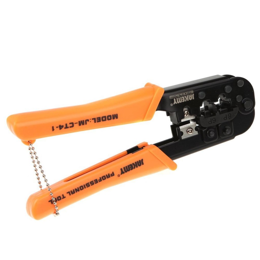 Jakemy Tang Crimper LAN Network Cable – JM-CT4-1 ditambah terhitung bersama dengan Cutter (pemotong kabel) dan Stripper (pemangkas serat kabel) yang bisa digunakan untuk memotong kabel telepon.